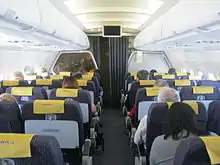 Monarch's aircraft operated in an all-economy layout. Several extra space seats were located towards the front of the cabin and adjacent to exit doors.