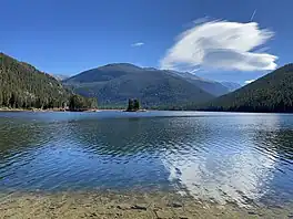 Monarch Lake is a reservoir in Grand County, Colorado located within the Arapaho National Recreation Area. The reservoir is adjacent to the Indian Peaks Wilderness on its north and east sides. The Continental Divide National Scenic Trail passes along its south side,[3] and the trailhead at the west end of the lake also marks the beginnings or ends of several other popular hiking trails.[4]