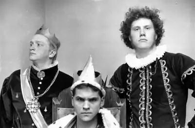 The University of Maryland's political group referred to itself as the Monarchist Party. It had the same goals as FSU's party, but it started much earlier. The actual organization date is uncertain, but some sources put it starting as far back as 1969[20] or possibly 1972. This seems to be the start date of the Markland Medieval Mercenary Militia[21] and there is some evidence that Monarchist Party split from the Militia to make sure it would continue to get funded by the Student Government Association.[20] It was not until 1985 that they got elected, and at that point they won the top slot by taking the Student Body Presidency. This first elected student king was King Tom II, AKA Tom Cooper, who later served in USMC during the Gulf War and then as a Maryland State Trooper ("Super-duper Trooper Cooper").[22] Also serving in the first court were Queen Virginia, Lord High Chancellor Duke Sir Paul, and Chancellor of Exchequer Prince Jim.