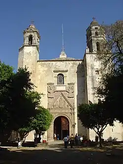 ![]() View of the church façade of the monastery in Tepoztlán | |