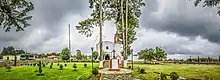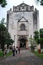 The monastery of Santo Domingo de guzmán in Hueyapán has the highest altitude of the monasteries in the state of Morelos, with its climate cold compared to most of the rest of the state.[6] It is one of the monasteries closest to the volcano. It was founded by the Dominicans, but its cloister was built of adobe and wood with a tile roof instead of stone. It disintegrated relatively quickly due to the elements and was abandoned.[4] It remains mostly closed to this day. Only the atrium area is open to visitors and this closes by 1pm each day.[4][11] The austere façade of the main church survives and it has a notable Barorque niche.[6][11] It is also possible to see a number of its remaining murals.[14]