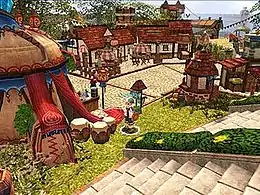 The world of Monato Esprit is divided into zones, which come in three categories: cities, countryside, and instance dungeons. City zones are urban settlements created by the Archons. They feature a large number of friendly NPCs and are completely free of monsters. Within city zones, players can receive and complete quests without fear of attack. Cities also serve as convenient meeting grounds for parties and guilds. Countryside zones are wilder areas of the world that have become infested with nightmares. Some countryside zones feature small Archon settlements with friendly NPCs, but these areas are not safe from monster attacks. Instance dungeons are special areas separated from the main world and can only be accessed through a gatekeeper. While inside an instance dungeon, characters' maps do not function, forcing players to find their own way through the maze. The objective for each dungeon is to find and defeat its boss. Although these areas are generically known as "dungeons", they come in a variety of visual styles, from catacombs to sunny forests.