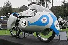 The collaboration between the Drusiani family and the Boselli family continued at the end of the war period, with the reconstruction of the building, thanks to the enormous economic resources of Boselli, who took over full control of the company.[2][3] FB effectively relaunched in 1948 as FB Mondial. Mondial found early racing success, winning their first of what would become five World Championships in only their second year of production. During a time when MV Agusta and Ducati produced economy lightweight two-stroke motorcycles, mopeds and scooters, Mondial was more of a "boutique" manufacturer, specializing in high-performance, small-displacement motorcycles. Much of the production of each motorcycle was done by hand, which kept output low, with production numbers typically ranging between 1,000 and 2,000 units per year. Mondial were able to continue this success for a number of years, sticking with this methodology. In 1957, Soichiro Honda approached Mondial owner Count Boselli for purchase of a Mondial racebike, with which the firm had just won the 125 cc and 250 cc world titles. Count Boselli gave Mr. Honda a racing Mondial; Honda used this bike as a standard to which he aspired, in order to compete on a world-scale. An original Mondial 125 cc racebike is, still now, the first bike on display when entering Honda's Motegi Collection Hall.