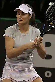 Monica Niculescu (born 25 September 1987) is a Romanian professional tennis player. She has been ranked by the Women's Tennis Association as high as 28 in singles and 11 in doubles. Niculescu has won several titles: three singles and ten doubles titles on the WTA Tour, one singles and one doubles title at WTA 125 tournaments, as well as 19 singles and 22 doubles titles on the ITF Women's Circuit.