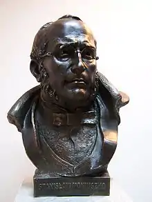 Moniuszko was born into a noble landowning family in Ubiel,[8][lower-alpha 2] Minsk Governorate (Russian Empire, now Belarus). His first piano teacher was his mother. He later continued his musical education in Warsaw and Minsk,[10] and studied under Carl Friedrich Rungenhagen in Berlin.[3] In 1858 he was appointed conductor at the Warsaw Opera. He also served as a professor at the Warsaw Conservatory.[3] He died in Warsaw, Congress Poland (Russian Empire) and was buried at Powązki Cemetery.[11]