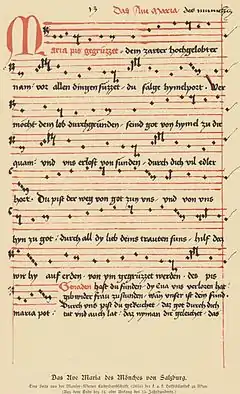 A page of music from the Monk of Salzburg's Ave Maria, from the Mondsee-Wiener Liederhandschrift of the mid-15th century.