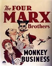 Monkey Business is a 1931 American pre-Code comedy film.[3][4] It is the third of the Marx Brothers' released movies (Groucho, Harpo, Chico and Zeppo), and the first with an original screenplay rather than an adaptation of one of their Broadway shows. The film also features Thelma Todd, Harry Woods and Ruth Hall. It is directed by Norman Z. McLeod with screenplay by S. J. Perelman and Will B. Johnstone. Much of the story takes place on an ocean liner crossing the Atlantic Ocean.