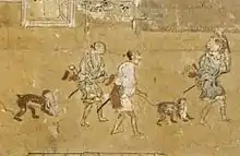 Monkeys are occasionally mentioned in early Japanese literature. Only one of the 4,500 poems in the (8th century) Man'yōshū mentions monkeys. Its author Ōtomo no Tabito "ridicules sober people for having faces as ugly as that of a monkey, while he justifies and praises drunks".[16] The (c. 787–824) Nihon Ryōiki collection of Buddhist setsuwa has a story about a female saint who first was mockingly called a saru "monkey" pretending to be something she is not, and later honorifically named with sari "ashes of the Buddha".[17]