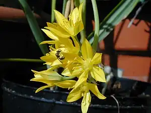Most zoophilous monocots produce nectar as a reward and this nectar is alike to nectar of dicots.[1][19][20][21] Carpellary septal nectaries are common and unique to monocots. Nonseptal nectaries are most often epithelial and positioned on the perigonal nectaries of tepals when occurring in monocots. Also, nectar can be produced in perigonal unicellular hairs, a trait only observed in monocots.[1] Monocots do not have disc nectaries whereas in dicots they are widespread.[22][23]