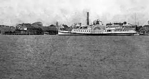 Barely two months later, on August 13, 1862, the United States Government chartered Monohansett.[1] During the American Civil War, Monohansett carried dispatches to United States Navy ships operating in the Atlantic Ocean off Cape Hatteras and Wilmington, North Carolina, as well as in the Chesapeake Bay and the Potomac River. The small screw steamer Helen Augusta operated as the substitute ferry to Martha's Vineyard during the war.[2] By the end of the war in April 1865, Monohansett was the headquarters boat at City Point, Virginia, and was used by General Ulysses S. Grant as a dispatch boat.[1] General Grant reportedly was very fond of Monohansett, and President Abraham Lincoln and his wife also spent time aboard her.[3]