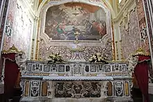 The Chapel of Our Lady of Madia has elaborate polychrome decoration on the altar. The chapel contains two large canvases by Pietro Bardellino, and there are 6 small 18th-century paintings depicting the Life of the Virgin by Michele del Pezzo. A series of four paintings (1732) in the Chapel of the Martyrs by Michelangelo Signorile recounts the Miracle of the Raft.[1]