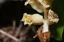 Monotropa hypopitys, the so-called Dutchman's pipe, false beech-drops, pinesap, or yellow bird's-nest, is a herbaceous perennial plant, formerly classified in the families Monotropaceae or Pyrolaceae, but now included within the subfamily Monotropoideae of the family Ericaceae. It is native to temperate regions of the Northern Hemisphere, and is scarce or rare in many areas. However, it is still the most widespread member of the subfamily. While currently included in the genus Monotropa, recent genetic evidence strongly suggests that Monotropa hypopitys should be placed in its own genus, Hypopitys, with the single species Hypopitys monotropa Crantz, but possibly containing several other species.[1]