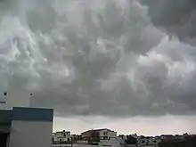 The etymology of the word monsoon is not wholly certain.[6] The English monsoon came from Portuguese monção ultimately from Arabic موسم (mawsim, "season"), "perhaps partly via early modern Dutch monson".[7]