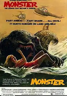 Monstroid is a 1980 American monster movie produced and directed by Kenneth Herts [1] (as Kenneth Hartford), co-written with Herbert L. Strock, and starring James Mitchum and John Carradine. Strock later claimed he co-directed the film uncredited.[2] It was originally to be titled Monster when the film was first announced in 1975, and again in 1977, and suffered numerous cast changes (Keenan Wynn was still billed on some of the early video releases). The film was eventually released in 1980 as Monstroid, and is also known as Monstroid: It Came from the Lake (American DVD box title) and The Toxic Horror (American alternative title). A novelization written by Peter Crowcroft was released concurrently with the film. Hartford had his own children (Glen and Andrea) play the two teenagers in the film.[3]