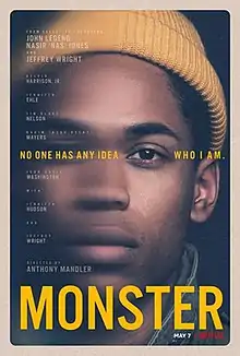 Monster is a 2018 American legal drama film directed by Anthony Mandler, from a screenplay by Radha Blank,[1] Cole Wiley, and Janece Shaffer, based on the novel of the same name by Walter Dean Myers. It stars Kelvin Harrison Jr., Jennifer Ehle, Tim Blake Nelson, Nas, ASAP Rocky, Paul Ben-Victor, John David Washington, Jennifer Hudson, and Jeffrey Wright. Wright, Jones, and John Legend also serve as executive producers on the film.