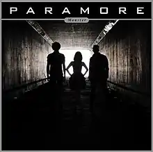 Around the release of "Monster", Williams commented on the track: "We're back for the attack! And we are so excited to be a part of the Transformers album. Tell your friends… Paramore is still a band."[10] The song impacted radio on June 21, 2011.[11] A video companion to "Monster" was recorded in Los Angeles and was uploaded to YouTube on July 18 .[12] The single cover was described by Becky Bain, as containing the three members of Paramore, Hayley Williams, Jeremy Davis and Taylor York, standing in a dark tunnel where a light at the end faces the band.[13]