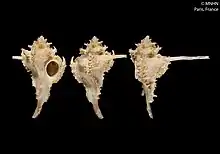 - Houart, R. (1987). Description of four new species of Muricidae (Mollusca: Gastropoda) from New Caledonia. Venus. 46 (4): 202–210.