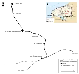 The Montérolier-Buchy–Saint-Saëns railway is a standard gauge branch line that operated between 1900 and 1953 in the département of Seine-Maritime, France. The line ran 10.2 kilometres (6.3 mi) in a roughly north-northwesterly direction, beginning in Montérolier-Buchy station (which is located in the commune of Montérolier and is a part of the Amiens–Rouen railway) and terminating in the small town of Saint-Saëns. The line passed through the town of Saint-Martin-Osmonville and over the Pont-du-Thil. It was administered on behalf of the département by the Compagnie des chemins de fer du Nord.[1] The line is a cul-de-sac.
