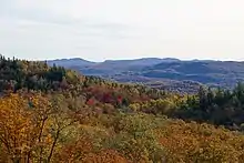 Fall view of Lac Monroe from the summit of La Corniche trail