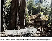 In the canyon of the Mokelumne River, Wolfe built himself two log cabins, where he lived for the rest of his life. Friends came to visit from time to time, and he occasionally ventured into the general store and bars along the highway about ten miles away. Aside from that, he lived as a hermit, and was entirely self-sufficient.[3]