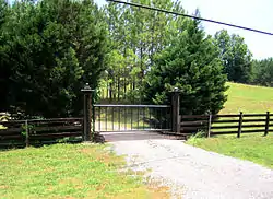 ![]() Main gate at Montebrier. The house is not visible from the public right-of-way. | |