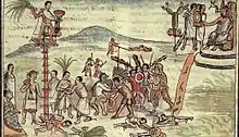 Early in his rule, he led a conquest against the state of Oaxaca in 1445.[12] Moctezuma also then went on to extend the boundaries of the Aztec empire beyond the Valley of México to the Gulf Coast, known as the "Sea of the Sky", for the first time, subjugating the Huastec people and Totonac peoples and thereby gaining access to exotic goods such as cocoa, rubber, cotton, fruits, feathers, and seashells.[12] The Aztec were then known as the "Neighbors of the Sea of the Sky", as they controlled all the territory up to the Gulf of Mexico.