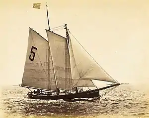 George W. Lawler, Augustus Hooper, and James L. Smith | pilot boat | 1884 | She was launched on October 4, 1884, from the Howard & Montgomery shipyard in Chelsea.[11] On May 13, 1901, the Hesper, was sold to Andrew C. Wheelwright, a retired merchant of Rowes Wharf, in Boston, Massachusetts.[12] |
