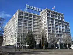 Retail service at this location was relatively limited in its first years. A 1936 expansion added retail space, covering a variety of goods, occupying a new mezzanine floor and parts of the 2nd and 3rd floors. A tire store was opened in an adjacent annex.[3] In the post-World War II years, the Vaughn Street store's business declined steadily. An increasing proportion of the store's customers were attracted to new suburban shopping malls, and in the early 1970s Montgomery Ward began to follow the same path itself, opening stores at Mall 205 and Jantzen Beach Mall, along with a stand-alone store in Beaverton.[3] The Northwest Portland store closed in July 1976, and the building remained in use only for warehouse and mail-order functions and as a "catalog overstock outlet".[3] In 1978, the company built a new warehouse in Portland's Rivergate Industrial District, and in 1982 it closed the Northwest Portland warehouse, eliminating 500 jobs at the site. Only the small "clearance outlet" store continued to operate,[5] and following the 1984 sale of the building, that store closed finally in July 1985.[7]