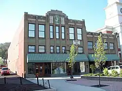 The east facade of this historic structure faces the Mifflin County Courthouse on Monument Square. One of the initial retail outlets constructed by the Montgomery Ward Company, this building was erected in 1929. Designed in the Art Deco style, it consists of the store building and attached office building. The store is two-stories, with a mezzanine level and measures approximately 40 feet by 150 feet. The office building is two-stories and measures approximately 30 feet by 145 feet. They are both of steel frame construction with brick exterior walls and feature terra cotta ornamentation.[2]