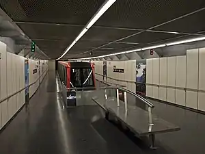 The Montjuïc Funicular (Catalan: Funicular de Montjuïc; Spanish: Funicular de Montjuic) is a funicular railway in the city of Barcelona, in Catalonia, Spain. The railway mainly runs through a tunnel and connects the Barcelona Metro's Paral·lel station (with connections to lines L2 and L3) with the hill of Montjuïc and the various sporting facilities and other attractions there.[1][2][3]