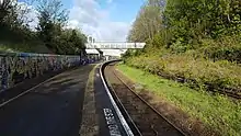 In 2004, the Severnside Community Rail Partnership was formed, covering the Severn Beach Line and a network of routes radiating from Bristol.[19] By 2008, they had created a support group for the station, were helping with station upkeep, and had improved the provision of timetabling information through the use of simplified departure timetable posters.[10] In 2007, they repainted the mural on the old station building, but it was defaced by vandals the same year. First Great Western offered a £500 reward for identifying the persons responsible, and stated they planned to install CCTV cameras.[34] Students from Fairfield High School repainted the mural with help from professional graffiti artist Richard Minchin.[35] Artist Wei Ong repainted the mural in 2015, and it was repainted again in 2017 by street artist Silent Hobo.[12][36] Customer help points with next train information screens were installed during 2008/09, paid for by money from the Department for Transport's "Access for All" fund and local councils.[37] The help points were stolen in early 2010, but have since been replaced.[2][38][39] A large number of trees north of the station, which had provided noise mitigation and stabilised the embankment, were felled in 2018 by local residents, without permission from Network Rail.[40][41]