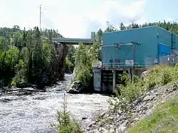 There are four hydroelectric dams and generating stations on the Montreal River, all owned and operated by Brookfield Renewable Power. In upstream order, they are Andrews Generating Station (57.78 MW; head of 57.78 m or 189.6 ft; next to Highway 17);[1] Hogg Generating Station (17.4 MW; head of 24 m or 79 ft);[2] Gartshore Generating Station (23 MW; head of 35 m or 115 ft);[3] and MacKay Generating Station, at Montreal Falls (62 MW; head of 75.3 m or 247 ft).[4]