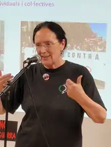 In 1985, around May 24, Dia Internacional de las Mujeres por la Paz y el Desarme (International Women's Day for Peace and Disarmament), with Dones Antimilitaristes (DOAN) and having the support of many feminist groups, Cervera organized a line of women and a protest camp against the army and against the construction of a military academy for women in Tortosa.[5] The mobilization had a great impact in experiential and political spheres, provoking a crisis in the municipal government and causing the PP to go into opposition.[6][7]