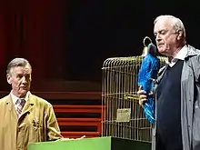 Ball co-founder Cleese and Jones had an involvement (as performer, writer or director) in all four Amnesty benefit shows, Palin in three, Chapman in two, and Gilliam in one. Idle did not participate in the Amnesty shows. Notwithstanding Idle's lack of participation, the other five members (together with "Associate Pythons" Carol Cleveland and Neil Innes) all appeared together in the first Secret Policeman's Ball benefit—the 1976 A Poke in the Eye held at Her Majesty's Theatre in London's West End—where they performed several Python sketches. In this first show, they were collectively billed as Monty Python. Peter Cook deputised for the absent Idle in a courtroom sketch.[82] In the next three shows, the participating Python members performed many Python sketches, but were billed under their individual names rather than under the collective Python banner. The second show featured newcomer Rowan Atkinson and Scottish comedian Billy Connolly.[86] The Secret Policeman's Ball were the first stage shows in the UK to present comedic performers (such as Monty Python and Rowan Atkinson) in the same setting and shows as their contemporaries in rock music (which included Eric Clapton, Sting and Phil Collins).[86] After a six-year break, Amnesty resumed producing Secret Policeman's Ball benefit shows which were held at the London Palladium in 1987 (sometimes with, and sometimes without, variants of the title) and by 2006 had presented a total of twelve shows. Since 1987 the Balls featured newer generations of British comedic performers, such as Stephen Fry, Hugh Laurie, and puppets from the satirical TV show Spitting Image, with many attributing their participation in the show to their desire to emulate the Python's pioneering work for Amnesty. Cleese and Palin made a brief cameo appearance in the 1989 Amnesty show; apart from that, the Pythons have not appeared in shows after the first four.[87]
