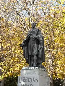 The Monument to Alfonso XIII is an instance of public art in Madrid, Spain. Located in the Ciudad Universitaria, it consists of a bronze statue dedicated to Alfonso XIII, signifying the latter's role as promoter behind the erection of the campus in the 1920s.