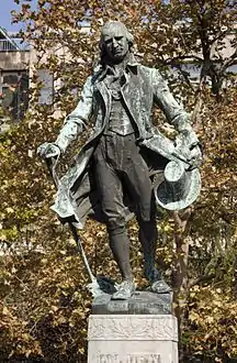 The monument to Dositej Obradović is located in the Academy Park, Belgrade, Serbia.[1] Obradović was Serbian writer, educator and the reformer from the revolutionary period of the national awakening and rebirth. Also in the park are monuments of the prominent Serbian scientists Josif Pančić and Jovan Cvijić, near Belgrade University.