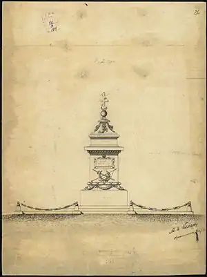 Design of the Vasil Levski Monument, 1878, by architect Antonín Kolář