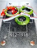 Based on the examination in 1921 and the properties discovered, it wasn't possible to identify the soldier or even to conclude in which unit he served.[2] Several historians from Belgrade and Sarajevo have claimed that the unknown hero is a Bosniak named Sulejman Balić, a soldier from Duga Poljana, a town between Novi Pazar and Sjenica, that fought in the Serbian army against Austria-Hungary.[5] But as the evidence suggest, the soldier was drafted immediately prior to the battle in October 1915, as he didn't receive the ID badge, so this claim is unlikely.[4]