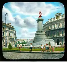 The original monument was built in 1900 by the project of Odesa architect Yuri Melent’evich Dmitrenkor, Sculptor M. Popov, with the participation of sculptors B.V. Eduards, M.D. Mentsione,[1] engineer A. Sikorski. This monument was toppled by the Bolsheviks in 1920. The monument was restored in 2007 with the private funds of Ruslan Tarpan, an Odesa businessman and member of the Odesa City Council.[2]