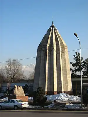 It was opened on February 15, 2003. Sculptor: Kazbek Satybaldin. Architects: Tokhtar Yeraliev and Vladimir Sidorov.[48] | |