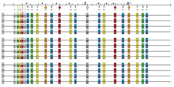 - A microtonal scale which shows "logical" string divisions in the following color-coded groups: