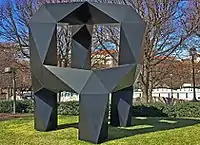 Moondog is a minimalist sculpture created by Tony Smith in 1964.[1] The piece is composed of 15 octahedra and 10 tetrahedra, and while perfectly ordered and symmetrical when seen from certain angles, it carries a strong tilt forward when seen from other angles. This is the third of an edition of three in the series (with one artist's proof).