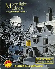 The game was created by John F. Cain, who had previously developed the successful budget game Booty for Firebird Software.[5] By this point Cain had also developed several titles for Rabbit Software, such as Potty Painter.[6] Moonlight Madness was published by Bubble Bus in the United Kingdom and Spain in 1986;[7] the original price was £7.95 in the United Kingdom.[4] Moonlight Madness was re-released on budget software labels; Blue Ribbon Software in the United Kingdom, Zafi Chip and Z Cobra in Spain. Blue Ribbon Software was a label belonging to CDS Microsystems, both of the Spanish budget labels belonged to Zafiro Software Division. The game was published on the covertape of the February 1991 issue of Your Sinclair magazine. The covertape also featured Marsport, Ninja Hamster and Wizard's Lair.[8]