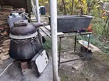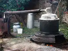 ![]() A crude moonshine (aragh) device in an Armenian village |