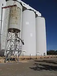 ![]() Chute for loading bulk grain into trains at Wunkar (photographed 2015) | ||||||||||||||||||||||||||||||||||||||||||||||||||||||||||||||||||||||||||||||||||||