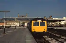 Promenade station survived the Beeching Axe, but by the late 1980s tourism in Morecambe was rapidly declining.[11] Traffic levels were significantly lower than they had been at their peak 30 years before, but the four platform, fully signalled, layout had remained largely unaltered and was far too large for the modest service (1-2 trains per hour) in operation. The local authority was keen to regenerate and redevelop the sea-front area surrounding the station and the adjacent Midland Hotel, so in 1993 the decision was taken to close Promenade Station and replace it with a new station situated slightly further inland and closer to the town centre. A final commemorative railtour visited the station the evening before its official closure on 7 February 1994.