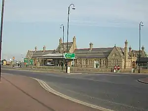 The Promenade station was built to cater for a large influx of passengers. To this effect, the station comprised four main platforms and a goods siding.[3] When the station opened, there was some controversy over the segregation of passengers into 1st and 2nd class waiting rooms. Many passengers disapproved of this and chose to wait instead in the station concourse.[5] The Midland Railway sought to exploit the potential of moving holidaymakers between Morecambe, Heysham and Lancaster and to provide a speedy and efficient service for workers at the then state-of-the-art 1905 port.[6] The station was therefore constructed opposite the old Midland Hotel, enabling tourists arriving overnight by rail to stay in the hotel before taking the boat to the Isle of Man and Barrow from the Stone Jetty. Passengers using the facilities came from Leeds and Bradford as well as the West Coast of Scotland.[7]