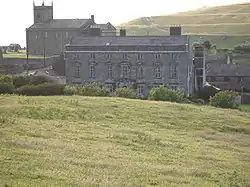 ![]() Moresby Hall from the south, with St Bridget's Church behind it. | |