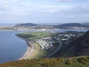 Known locally as "The Morfa" (Welsh, Y Morfa - meaning the sea marsh), it shapes the south side of the estuary of the River Conwy. Today a large sandy bay, which at low tide forms part of the extensive sandy beaches and mussel banks of Conwy Bay, Morfa Conwy has many developments on its land, including: