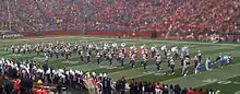 The Morgan State Marching Band performing during halftime at the Rutgers University–Morgan State football game in Piscataway, New Jersey (September 2008)